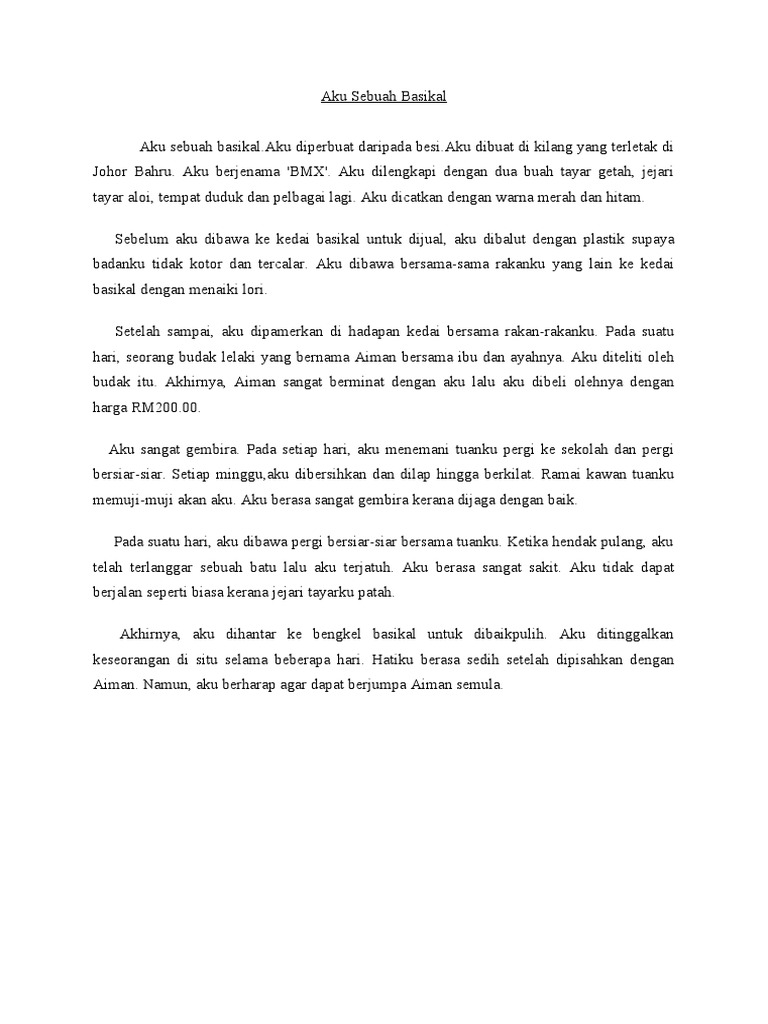 Aku sebuah basikal add to my workbooks 0. Tulis sebuah karangan yang bertajuk Aku Sebuah Televisyen. Setiap hari aku dibersihkannya setelah digunakan.